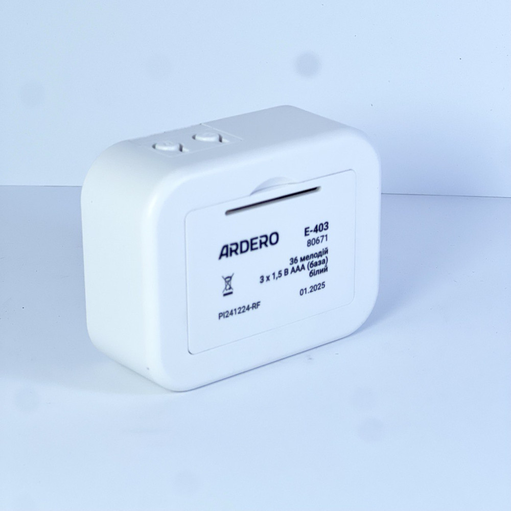 Ardero E-403 — это надежное и удобное решение для организации дверного оповещения без лишних хлопот с проводкой. Его современный дизайн и функциональность делают его отличным выбором для любого помещения.