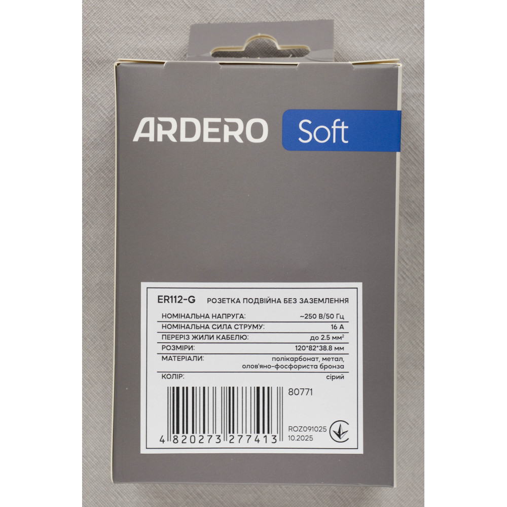 Эстетичный дизайн и универсальность делают розетку Ardero ER112-G удобным и практичным выбором для дома, офиса или коммерческих помещений.