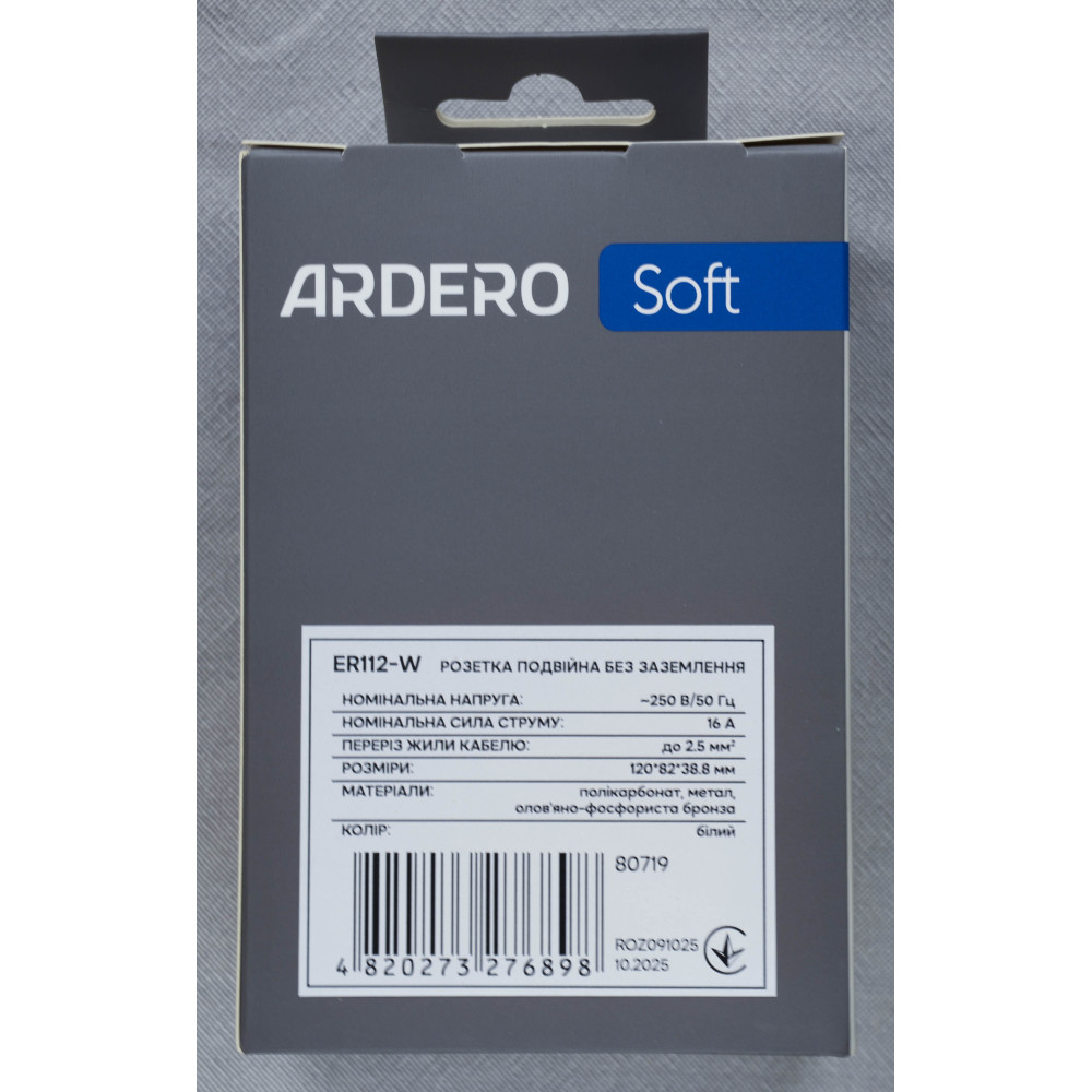 Ardero ER112-W розетка двойная без заземления белый 16А Soft