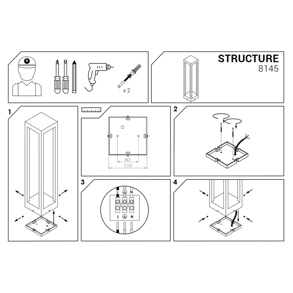 Уличный светильник Nowodvorski 8145 Structure LED 1x13W 3000K 820Lm IP54 Черный — это стильное и надежное решение для наружного освещения террасы, сада или загородного дома. Выполненный в цвете черный из материалов, преимущественно: пластик, этот светильник подходит для использования в соответствующих степени влагозащиты погодных условиях, обеспечивая долговечность и стойкость к внешним воздействиям. Коллекция STRUKTURE объединяет передовые технологии и элегантный дизайн, создавая освещение, которое гармонично впишется в стиль вашего сада, террасы или фасада здания. Превосходное качество оптической, электронной и механической составляющих, а также изысканный дизайн, обеспечивают удивительную точность цветопередачи и расширенные возможности применения светильников.