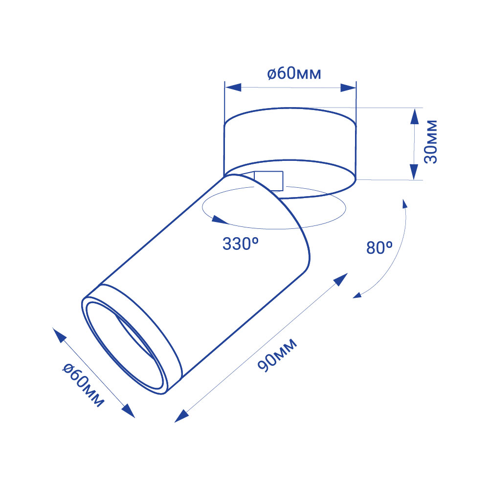 Регулировка направления светового потока. Светильник вращается, поэтому можно изменять направление света на 330 и 80 градусов в двух плоскостях.