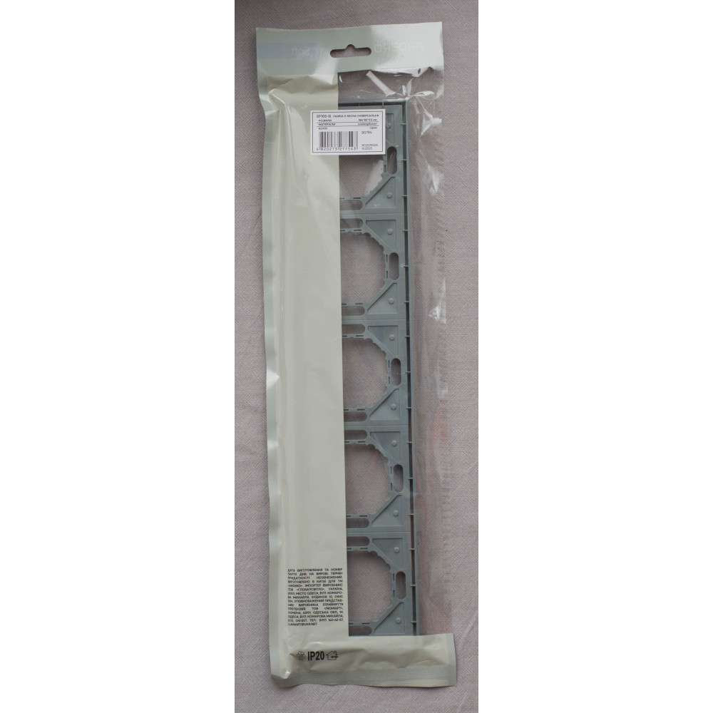 Ardero EF105-G рамка 5-місна універсальна, сірий Soft – стильне та практичне рішення для оформлення розеток і вимикачів. Виготовлена з високоякісного полікарбонату з приємним на дотик матовим покриттям Soft-touch, що забезпечує сучасний вигляд і додаткову стійкість до подряпин. Універсальна конструкція дозволяє використовувати рамку з різними механізмами серії Ardero, забезпечуючи надійну фіксацію та зручність монтажу. Лаконічний сірий колір гармонійно поєднується з будь-яким інтер’єром – від класики до мінімалізму.