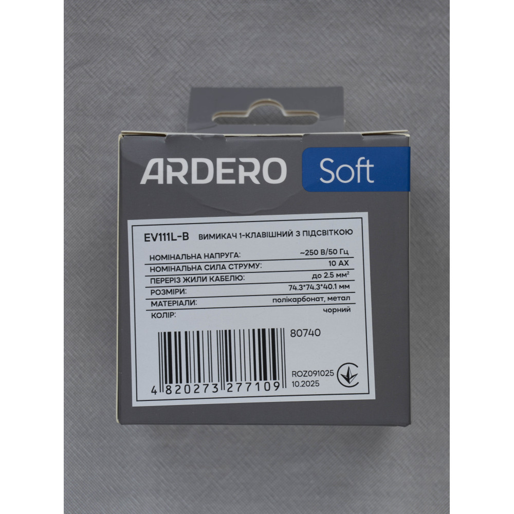 Ardero EV111L-B вимикач 1-клавішний з підсвіткою, механізм чорний 10А Soft