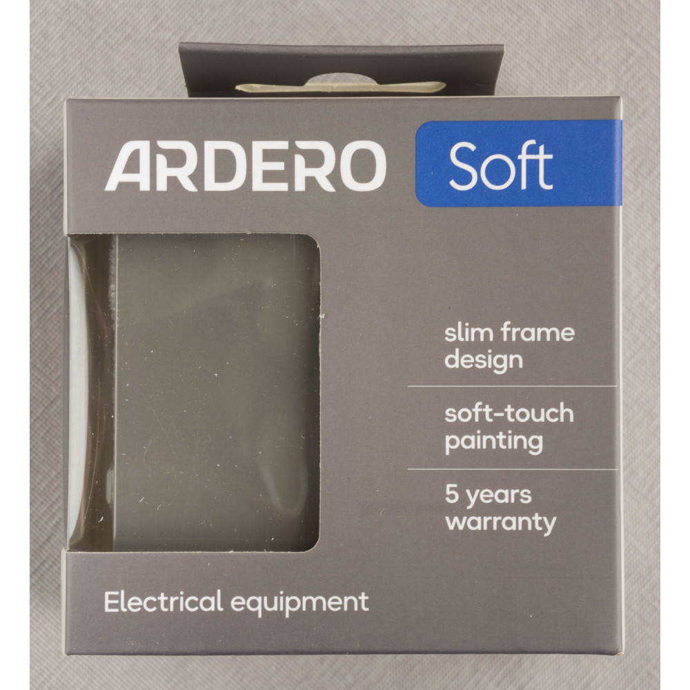 Вимикач поєднує надійність, зручність експлуатації та стильний зовнішній вигляд. Сумісний із рамками серії Ardero Soft, що дозволяє легко підібрати дизайн під будь-який інтер'єр.