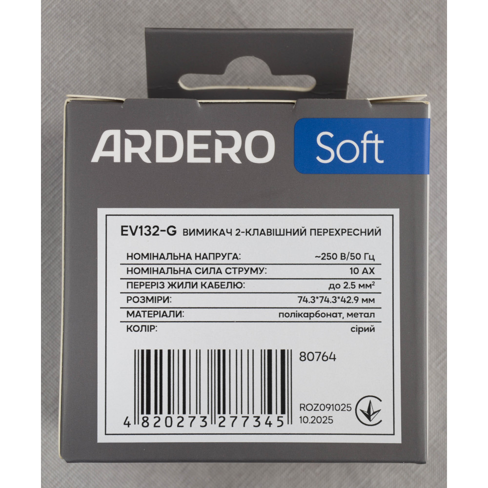 Ardero EV132-G вимикач 2-клавішний перехресний, чорний механізм сірий 10А Soft