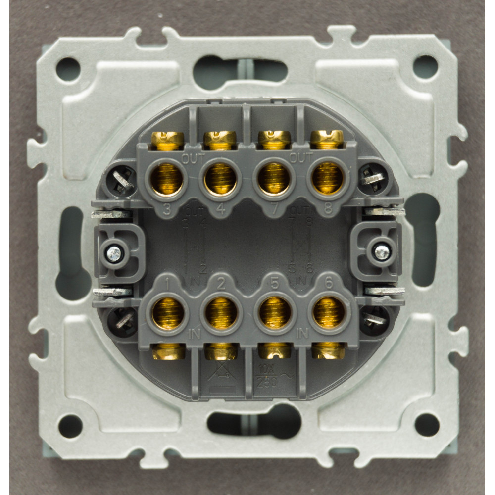 Перехресний вимикач Ardero Soft легко встановлюється, забезпечує надійне підключення та сумісний із рамками серії. Його стильний сірий механізм підкреслює сучасний інтер'єр та підходить для будь-яких дизайнерських рішень.