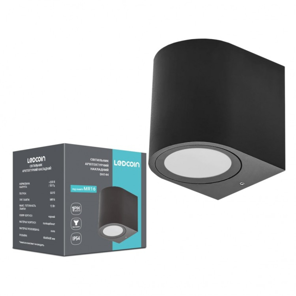Переваги та особливості архітектурного накладного світильника Ledcoin DH144 під лампу чорного кольору: