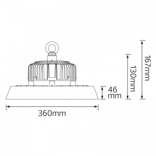 Призначення: Для загального освітлення промислових, комерційних та громадських приміщень з високими стелями (від 4 до 12 метрів): склади, цехи, ангари, виробничі майданчики, торгові зали, спортивні комплекси.