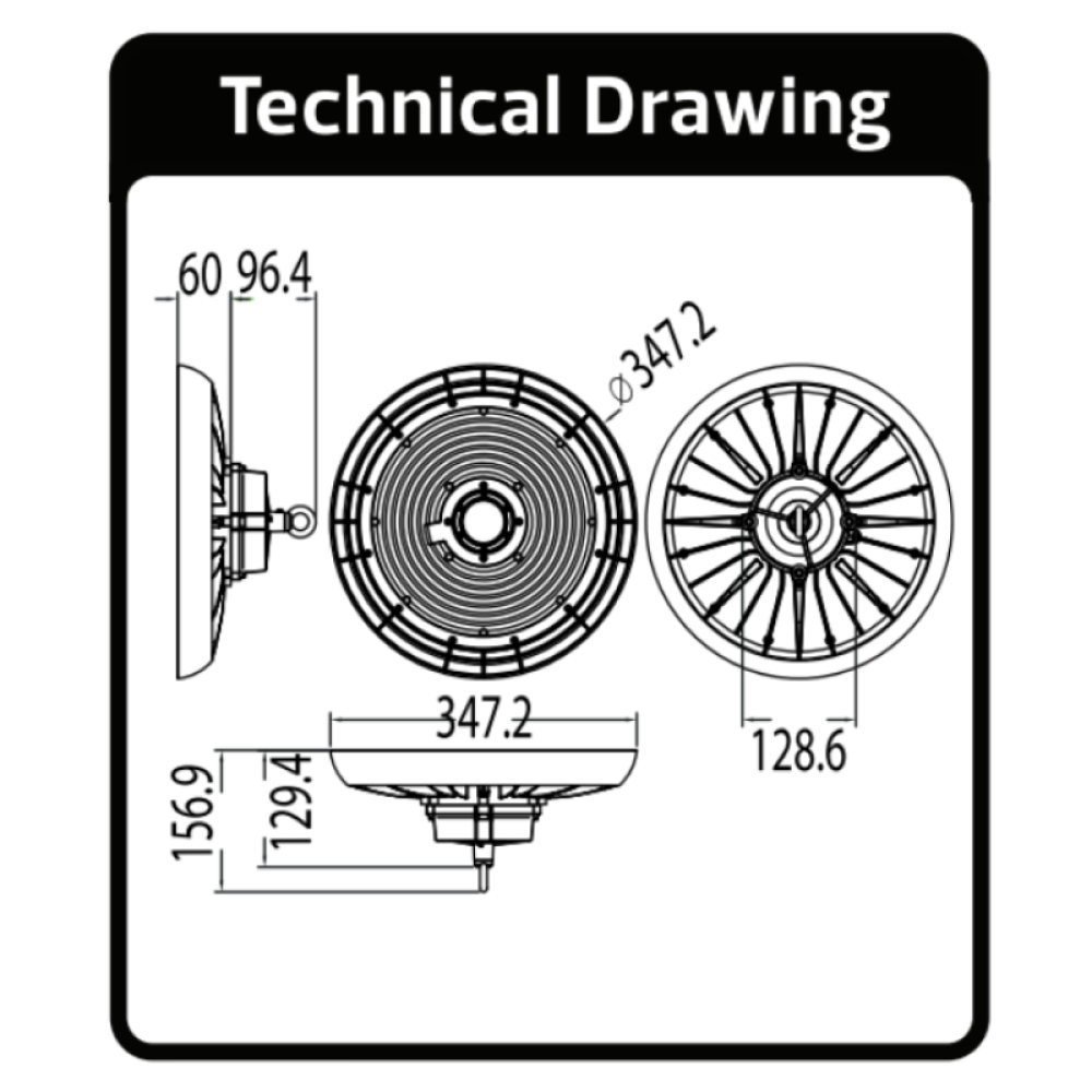Призначення: Для загального освітлення промислових, комерційних та громадських приміщень з високими стелями (від 4 до 12 метрів): склади, цехи, ангари, виробничі майданчики, торгові зали, спортивні комплекси.