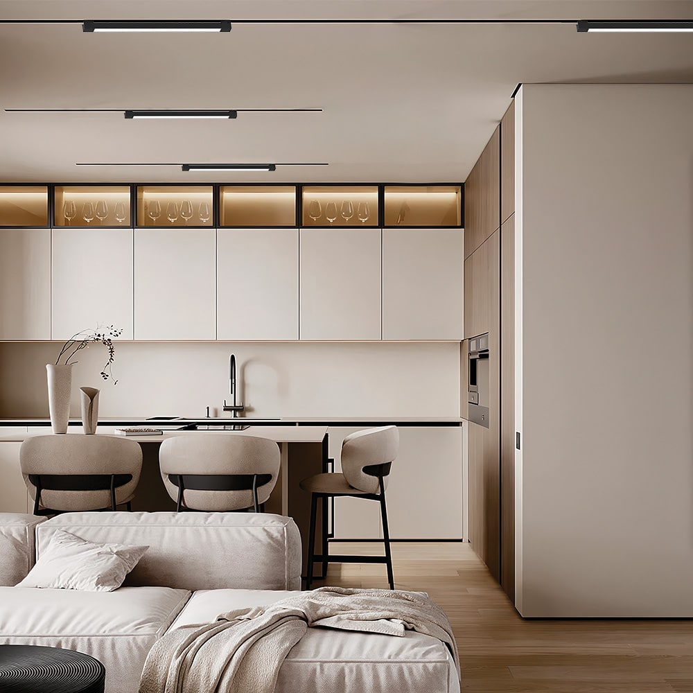 Однофазні трекові системи - дуже популярне рішення у сфері інтер’єрної підсвітки торгівельних, житлових та інших приміщень. Це найкращий варіант для створення акцентного освітлення, коли необхідно підкреслити деталі інтер’єру. Завдяки дизайну, схожому на магнітні трекові світильники, ці моделі (особливо у поєднанні з вбудованими шинами CAB1004) створюють схожий на магнітні системи вид, але кінцева вартість такої системи освітлення зменшується.